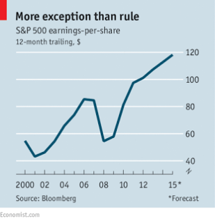 Une autre tendance est la hausse des inégalités. The Economist montre l’explosion des bénéfices par action aux Etats-Unis, qui devraient passer de 85 dollars par action en 2007 à près de 120 cette année ! Ailleurs, il soutient que « les politiques pour transférer les revenus des riches aux pauvres seraient moins efficaces qu’imaginé ». Pour soutenir cela, il rapporte les études d’économistes qui démontrent que la consommation des ménages qui ont du mal à joindre les deux bouts mais qui ont des actifs illiquides (ceux qui ont acheté une maison) est encore plus réactive aux évolutions de revenus que celle des ménages pauvres sans actif. Mais cela ne concerne pas ceux qui gagnent le plus…