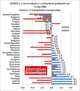Les deux gâchettes de Sarkozy osent dénoncer le manque de réformes de Tsipras, en seulement cinq mois, au bord du défaut ! Ils ont aussi entonné le refrain paresseux sur les méchants grecs, au fonctionnement archaïque, corrompus… Sauf que, comme l’a déniché Alternatives Economiques, les chiffres même de la Commission Européenne montrent que la Grèce est, avec le Portugal, le pays qui a fait le plus gros effort d’ajustement budgétaire de 2010 à 2014, soit 8,3% du PIB (3,1% en France, 2,4% en Allemagne, 2% au Royaume-Uni). En outre, Joseph Stiglitz et Paul Krugman, deux « Prix Nobel d’économie », ont soutenu le « non » et jugé que c’étaient les créanciers qui étaient irresponsables.
