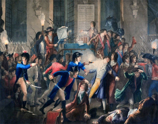 Tandis que sonne le tocsin, le député Barras se dépêche d’intervenir. Il rassemble des troupes et entre dans l’Hôtel de ville.