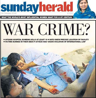 Dans un monde où le moindre mot de travers, souvent plus ou moins sorti de son contexte, peut déclencher de gigantesques polémiques, il peut sembler paradoxale que la bavure des Etats-Unis en Afghanistan n’ait pas déclenché davantage de réactions, en France en tout cas. En revanche, un quotidien Ecossais, The Herald, s’est demandé en une s’il s’agissait d’un « crime de guerre ». Alors que dans un premier temps, le chef de mission de l’OTAN a affirmé que la frappe avait été réalisée « à la demande des forces afghanes », Médecins Sans Frontières, a dénoncé les contradictions des déclarations étasuniennes. L’ONU a jugé le raid « inexcusable » et même « potentiellement criminel », les bombardements ayant continué 45 ministres après que l’ONG ait averti les armées engagées qu’elle était touchée.