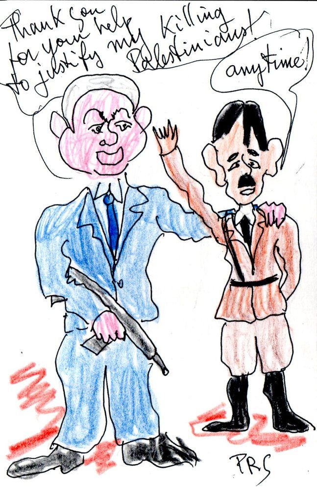 Voilà la version Netayahu qui disculpe donc les Nazis car ils ont été conseillés par les Arabes. La suite est logique : les Arabes voulaient tuer les Juifs , nous devons, dans le cadre d’un œil pour un œil, tuer les Palestiniens.