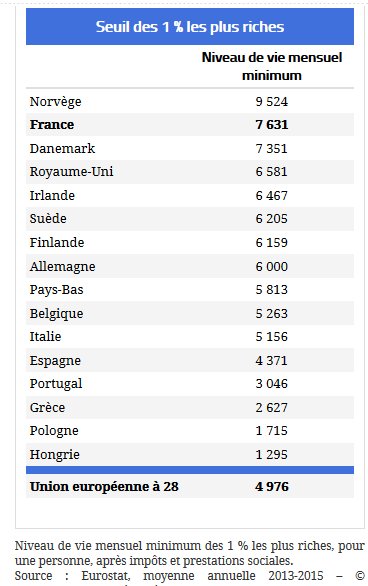En effet, si les plus riches étaient opprimés fiscalement en France, alors, notre pays en compterait moins que la moyenne. Manque de chance, les statistiques semblent indiquer que la France n’est pas si hostile pour les plus riches puisque nous en comptons plus que tous les pays européens, à l’exception de la Norvège. En effet, le seuil pour faire partie du 1% le plus riche est à 7 631 euros par mois, contre 4 976 pour l’UE, 6 581 outre-Manche ou 6 000 tout rond en Allemagne. Bref, en France, les plus riches sont plus riches qu’ailleurs en Europe. Le rapport entre les revenus des plus riches et les autres est également supérieur au reste de l’Europe, Portugal à part, invalidant certains discours.