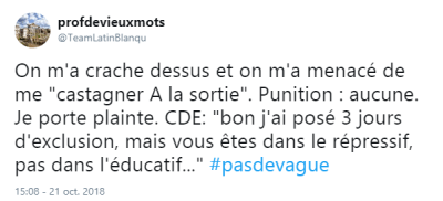Le ministre déclare que les enseignants auront – désormais – tout son soutien, que des « moyens » seront mis en oeuvre, etc, etc, etc …