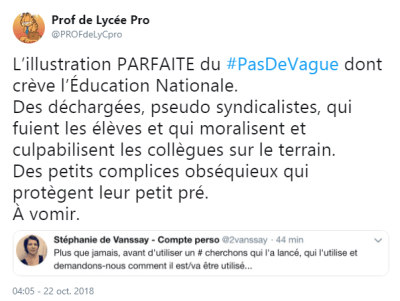 Ou encore la réaction de syndicalistes, ceux qui justement devraient défendre les enseignants, mais appellent ici à relativiser, question qu’ils n’osent pas se poser dans d’autres cas, comme avec #MeToo: