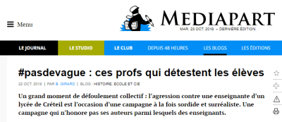 Et toute la bonne société de jeter l’opprobre sur ces enseignants, qui sont fautifs, car en fait ils n’aiment pas les gentils élèves, dans la plus pure logique Bisounours, position reprise notamment par Mediapart:
