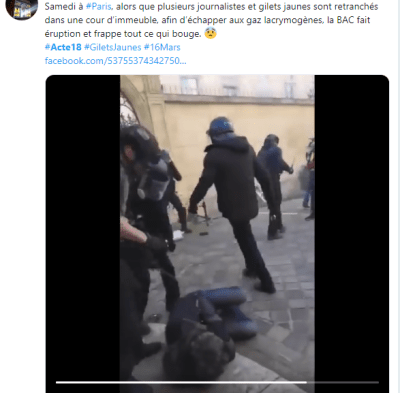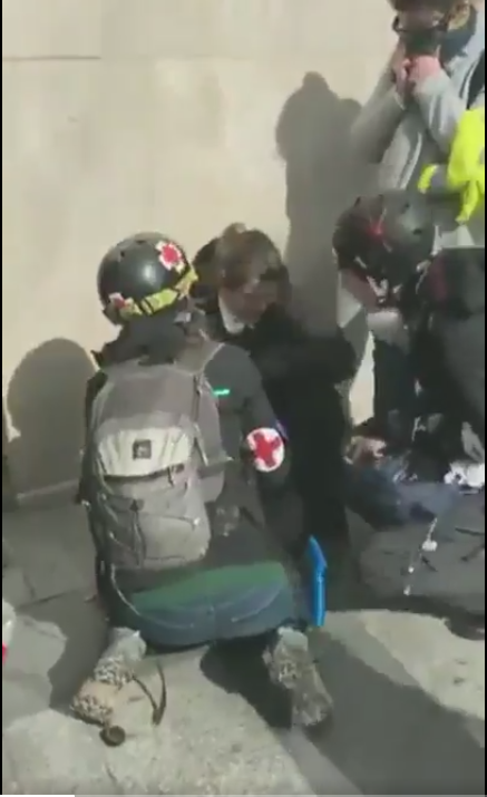 Parallèlement, le net regorge d’images choquantes de manifestants et de journalistes rien de moins « qu’agressés » par des représentants des forces de l’ordre, dont le comportement laisse planer des doutes quant à sa légitimité : poursuites de journalistes, coups contre leurs appareils, coups contre des hommes et femmes à terre, interventions médicales d’urgence de plus en plus nombreuses …
