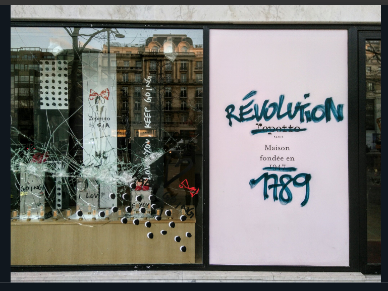 Pendant ce temps, 80 magasins sur les Champs-Elysées sont saccagés, les black blocs circulent sans entraves et sont extrêmement nombreux – la technique des « interpellations préventives », appliquée aux Gilets Jaunes, ne leur semble pas ici avoir sa place … Etrange.