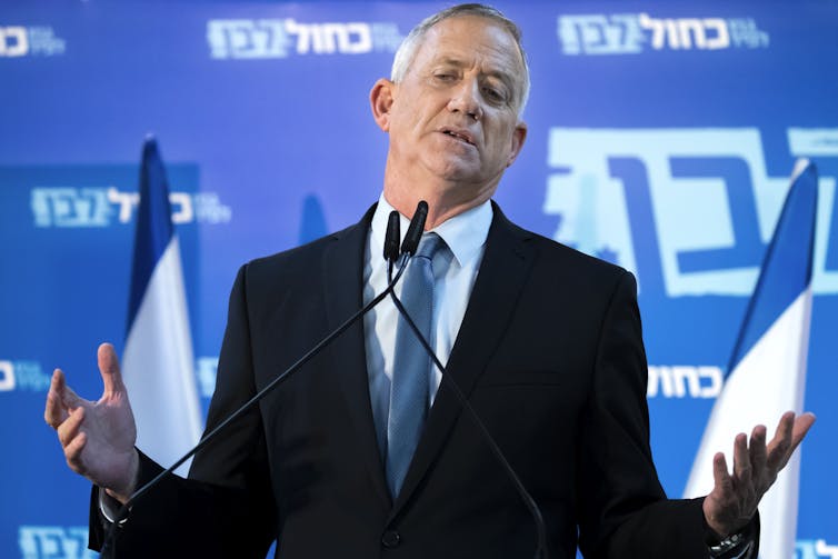 Cette nouvelle coalition politique (baptisée « Bleu-Blanc ») a fait campagne en présentant Nétanyahou comme un dirigeant corrompu, poussé à la radicalisation par ses alliés extrémistes. Avec trois anciens chefs d’état-major de l’Armée de défense d’Israël au sein de sa direction, il s’inspire du militarisme israélien, jouant sur le fait que l’Armée de défense d’Israël est considérée par l’opinion comme l’institution publique la plus digne de confiance, « gardienne des valeurs nationales » selon Stuart Cohen. Le slogan de sa campagne – « Arrêtons la folie », conjugué à un discours virulent et des photos de durs à cuire – suggère une certaine pondération et une nouvelle forme de leadership responsable.