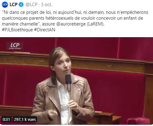 Donc nous ne sommes plus dans un monde où la norme sociale posée est celle où les femmes accouchent et lorsqu’elles ne le peuvent pas, elles tentent la procréation médicalement assistée ou l’adoption. Non, car pour cela il faut un rapport sexuel homme – femme – quelle horreur! C’est totalement dépassé ! Vive alors la PMA sans père. L’idéal est quand même, et de se passer de rapport sexuel avec un représentant de l’autre sexe, et de se passer d’accouchement. Comme le confirme cette déclaration surréaliste d’Aurore Bergé, faisant finalement des rapports hétérosexuels et de la procréation normale entre un homme et une femme une sorte de délicieux anachronisme qui ne sera pas interdit (quelle chance, profitons-en tant que c’est permis!), certainement par respect pour la succulente confiture de mûre de mamie :