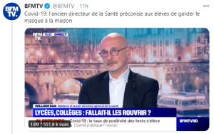 Même la journaliste, un peu surprise, de demander : et on fait comment pour les repas ? La réponse est simple, cinglante, fanatique à souhait : « On n’est pas obligés de tous manger en même temps. C’est un bouleversement…, a-t-il concédé. Mais si on ne contrôle pas ça, on ne va pas arriver à concilier notre obligation éducative et malgré tout, ralentir cette épidémie, pour éviter des malades et des morts et limiter la casse économique et sociale. Il faut dire aux jeunes qu’ils doivent garder le masque à la maison. »