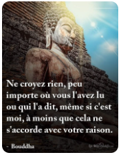 Mon petit-fils bien aimé, permets-moi, pour finir, de te faire la recommandation que le Bouddha faisait à ses disciples : « Ne crois rien, peu importe où tu l’as lu ou qui l’a dit, même si c’est moi, à moins que cela ne s’accorde avec ta raison ».