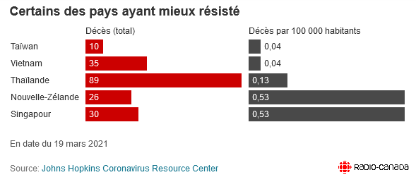 Taïwan, Singapour, le Vietnam, la Thaïlande et la Nouvelle-Zélande sont des exemples de pays où les autorités ont rapidement agi pour empêcher l’entrée du virus sur leur territoire et ont mis en place un traçage intensif en vue de l’éradiquer. Cela implique des fermetures de frontières et des quarantaines très strictes.