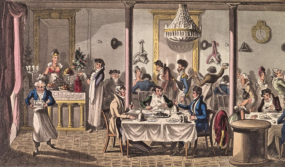 Or ces lieux ne proposent que des tables d’hôtes avec un plat unique, au prix non fixé à l’avance, dans lesquels on ne vient qu’à heure fixe. De plus, la qualité n’est pas toujours au rendez-vous. Les personnes qui se rendent dans ces lieux le font pour se nourrir et non pas pour apprécier les qualités gustatives d’un plat. Les rôtisseurs et les traiteurs présents aussi à l’époque ne peuvent vendre que des pièces entières et non pas des portions individuelles.