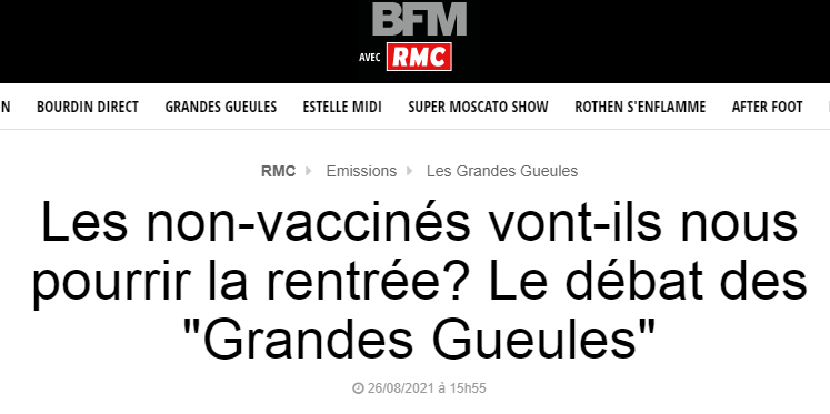 A côté de cela, l’on voit l’hystérie des pseudos experts sur les plateaux télé, demandant à « pourrir la vie » de ces « connards » de non-vaccinés. Au-delà de Thierry Moreau qui vient d’avoir son heure de gloire, faire reposer la responsabilité des mesures liberticides sur les non-vaccinés est devenue courante dans le discours médiatique et a pour but de déresponsabiliser les gouvernants :