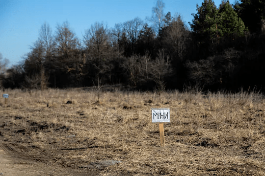 There were also two lines of antitank mines on the road. To one side, a lush patch of greenery, an ideal place for picnics, was sealed off with a warning sign: Mines.