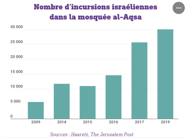 Cela a ouvert la voie à des visites plus organisées de colons et activistes d’extrême droite israéliens, protégés par la police. À compter de 2017, ces incursions ont été organisées sous le format quotidien qu’on connaît actuellement.