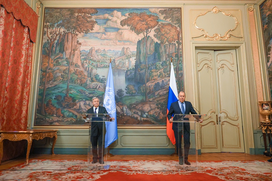 À la suite des contacts du Secrétaire général des Nations unies avec notre ministère de la Défense le 4 mars dernier, nous avons créé le Quartier général de la coordination inter-agences pour la réponse humanitaire sur la base du Centre de gestion de la défense nationale de la Fédération de Russie. Les représentants de l’ONU se mettent d’accord sur des points précis qui permettent d’organiser la livraison de l’aide humanitaire en toute sécurité. Les Nations unies, le Bureau de la coordination des affaires humanitaires des Nations unies, ont déjà réussi à envoyer cinq convois de ce type dans différentes parties de l’Ukraine, en plus de l’aide humanitaire qui est fournie quotidiennement aux citoyens ukrainiens, à Donetsk, à Louhansk, par l’intermédiaire du ministère russe de la défense, de l’EMERCOM et de diverses ONG russes. Aujourd’hui, nous avons discuté des actions possibles pour renforcer notre coopération dans ce domaine. Je pense qu’à l’issue des discussions de Moscou, nous serons en mesure de décider des mesures de ce type et de leur nécessité dans la situation actuelle.