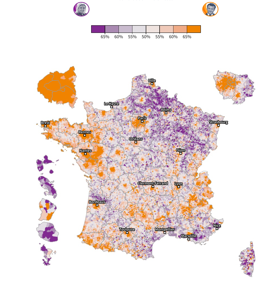 Même si elle y est parvenu outre-Mer, Marine Le Pen n’a pas réussi à fédérer les opposants à Macron, dont la majeure partie de l’aile gauche a préféré reconduire le président sortant ou s’abstenir plutôt que franchir le Rubicon décrété par les élites. J’ai tendance à penser qu’elle paie le prix de sa droitisation sur les sujets économiques, alors que le discours plus social qu’elle tenait jusqu’en 2017, qui faisait dire qu’elle avait le même programme que Mélenchon, avec revalorisation du SMIC, rééquilibrage plus fort de la fiscalité des plus riches et des multinationales, et défense plus marquée des services publics et des fonctionnaires, aurait pu changer la donne. De même, elle aurait sans doute gagné à être plus incisive face aux mensonges et aux attaques de Macron lors du débat du second tour. Même si elle vaut mieux que Macron pour moi, elle est loin d’être la candidate idéale pour nous sortir de l’oligarchisme.