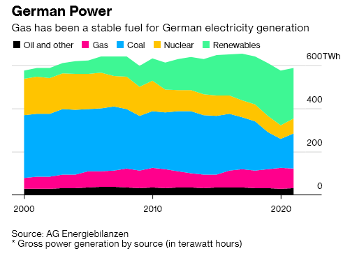 The fuel is a crucial part of energy mix of Europe’s largest economy. Some 15% of Germany’s’s electricity is generated from gas — compared with less than 9% in 2000, as the country winds down nuclear and coal. The fuel is also critical for heating homes and industrial processes in the chemicals and pharmaceuticals sectors.