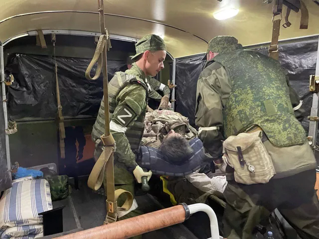Les médecins entrent dans les bus, interrogeant les prisonniers sur la nature de leurs blessures. Principalement des blessures d’explosion et de shrapnel aux membres. Il y a deux amputés : l’un a la jambe arrachée sous l’aine et l’autre juste sous le genou. Un combattant de l’AFU avec des brûlures, c’est le pire. « J’ai été touché par des lance-flammes », dit-il aux chirurgiens.