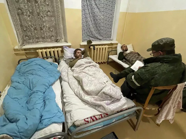 Dès qu’ils passent des sombres cachots d’Azovstal aux salles lumineuses et chauffées, les prisonniers se calment visiblement. Ils reçoivent un dîner, du thé avec des biscuits et du lait concentré. Une jeune infirmière, marchant dans le couloir, se penche sur un des blessés et ajuste une couverture à ses pieds.