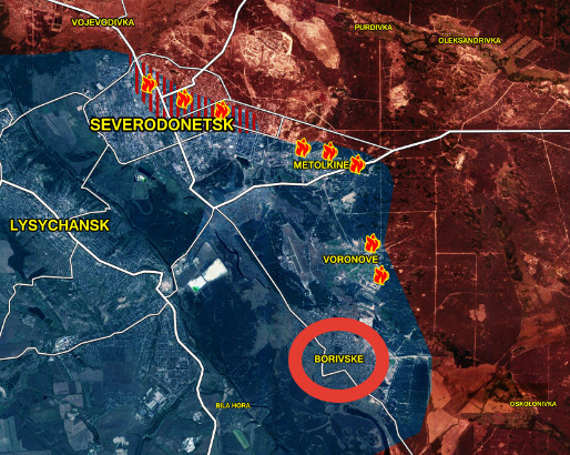 Selon des données préliminaires, le village de Borovskoe, situé au sud de Severodonetsk, est passé sous le contrôle de la LPR. Les premiers rapports sont arrivés dans l’après-midi du 7 juin, mais ils doivent encore être confirmés.