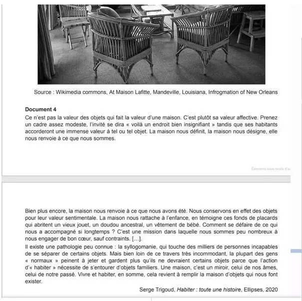 Le résultat le laisse abasourdi. Ils ont trouvé ces références dans leur manuel. Un ouvrage de culture générale destiné aux BTS, publié par le très sérieux éditeur Ellipses bien connu des élèves de prépa scientifique. Le manuel est destiné aux examens de 2022 sur le thème de l’année, «Dans ma maison», thème déterminé par le ministère de l’enseignement supérieur. Il présente une méthodologie ainsi que des fiches sur le sujet, remplies de citations d’auteurs ayant réellement existé, comme Guy de Maupassant, Le Corbusier… Mais on y trouve aussi des extraits de livres de Serge Trigoud et Pascaline Messager. Le tout sans que soit précisé nulle part que certains textes sont authentiques et d’autres non. On peut donc trouver des extraits d’ouvrages inexistants, comme ici: «Une maison, c’est un miroir, celui de nos âmes, celui de notre passé. Vivre et habiter, en somme, cela revient à remplir la maison d’objets qui nous font exister», Serge Trigoud, Habiter: Toute une histoire, Ellipses, 2020…