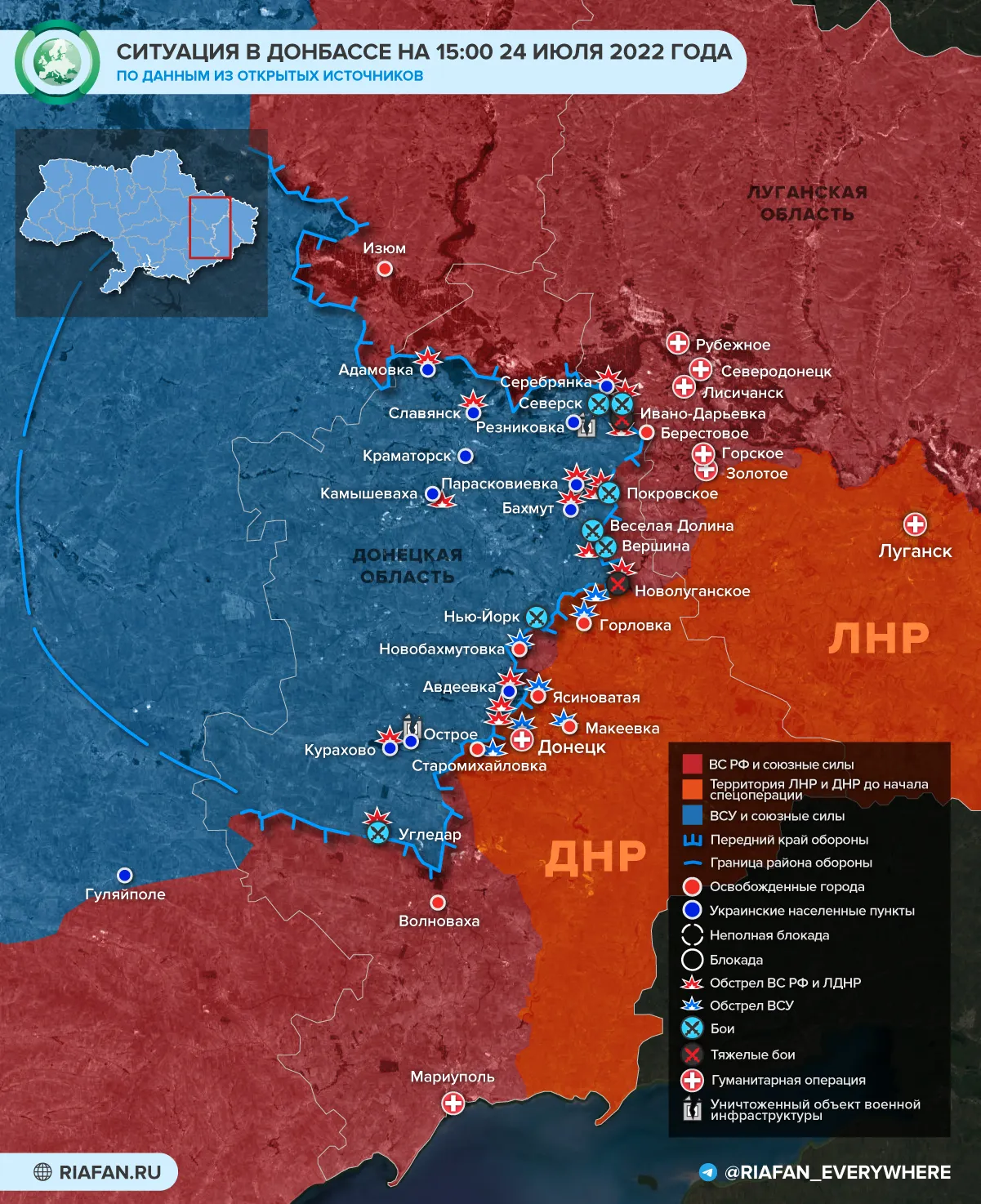Politico a rapporté que des mercenaires américains, canadiens et suédois qui avaient pris part à des opérations de combat dans les rangs des forces armées ukrainiennes avaient été tués près de Seversk. Leur commandant présumé, Ruslan Miroshnychenko, a déclaré ceci . Les légionnaires auraient été tués à la mi-juillet près du village de Hryhorivka.