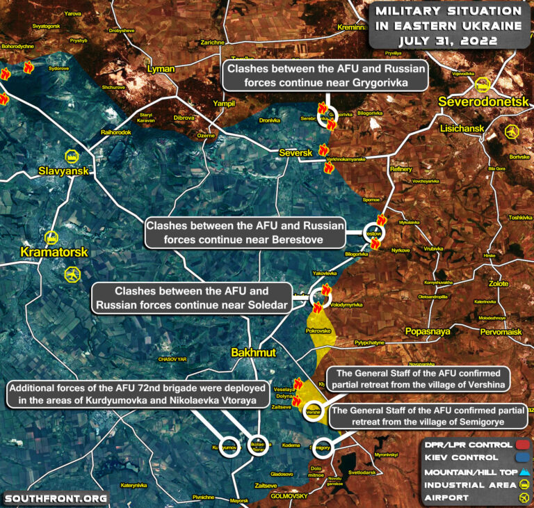 Additional forces of the AFU 72nd brigade were deployed in the areas of Kurdyumovka and Nikolaevka Vtoraya.;