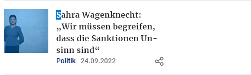 Sahra Wagenknecht : « Nous devons comprendre que les sanctions sont un non-sens ».