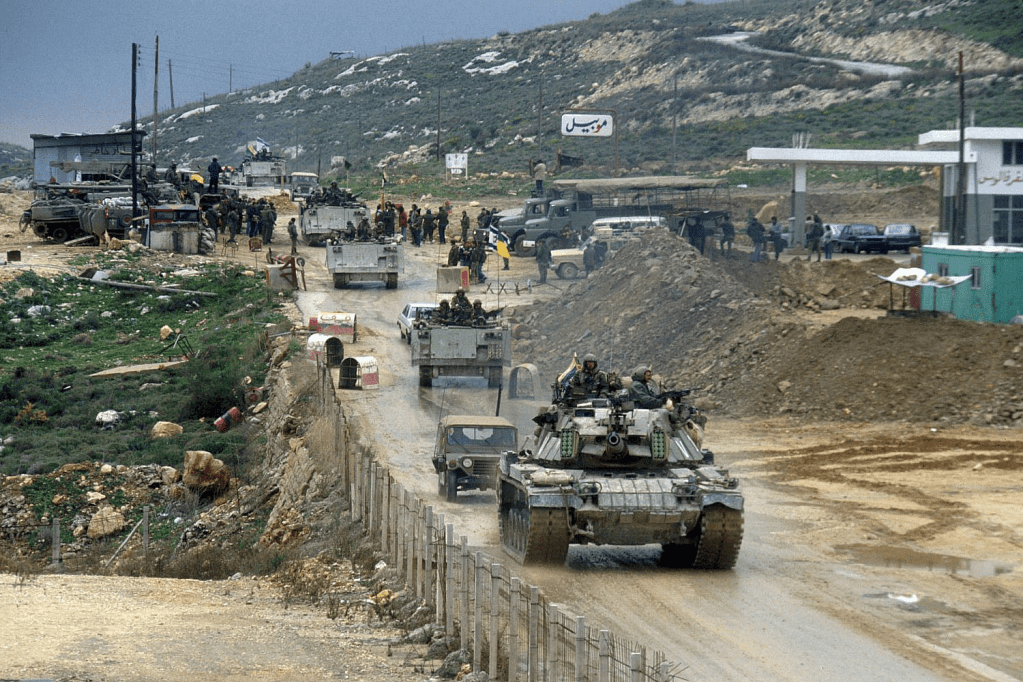 Photo : Des véhicules de l’armée israélienne passent sur le pont d’Awali alors qu’ils se retirent du Liban, le premier jour de la première étape d’un retrait planifié, le 16 février 1985. (Yossi Zamir/Flash90)