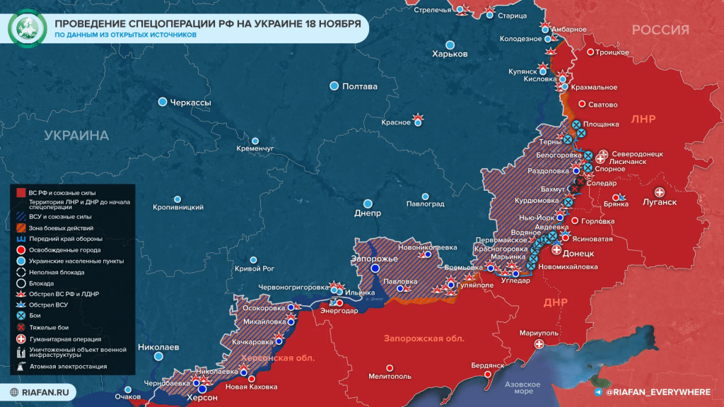 Dans la nuit et la matinée du 18 novembre, les forces armées ukrainiennes ont ouvert le feu sur Bryanka en utilisant des MLRS HIMARS. Selon l’administration locale, la frappe a fait des victimes et des bâtiments résidentiels ont été endommagés.