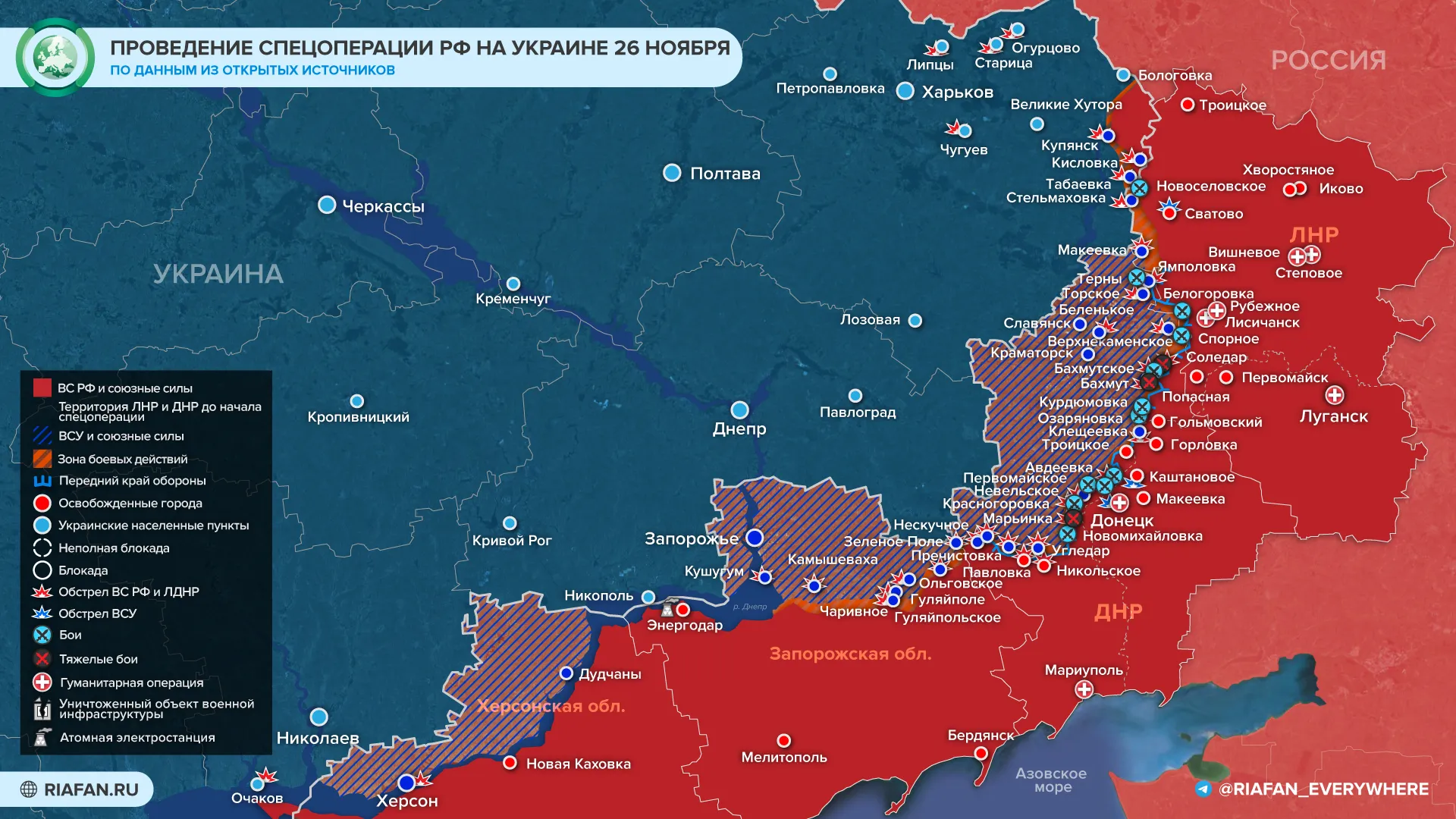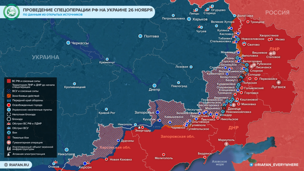 Dans la nuit et la matinée du 26 novembre, les troupes ukrainiennes ont bombardé Donetsk, ainsi que les localités de Kashtanove, Yasynuvata, Troitske et Mineralnoye.