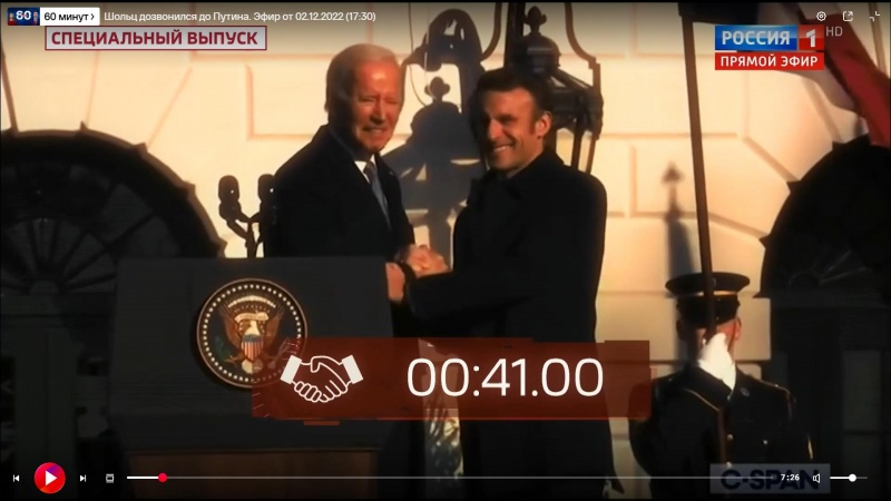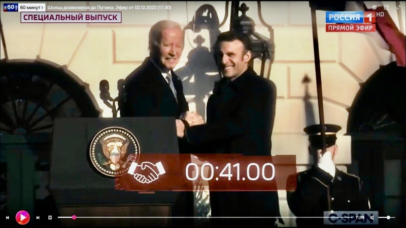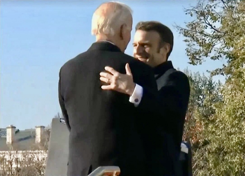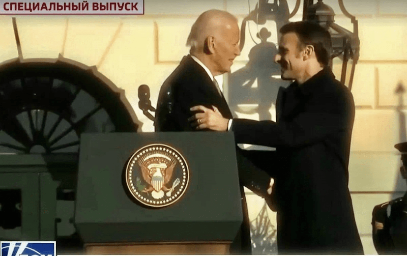 Macron a reçu une poignée de main ferme, très ferme, de Biden pendant 41 secondes (42, selon des spéculations malveillantes), et a échappé de justesse à la prise.