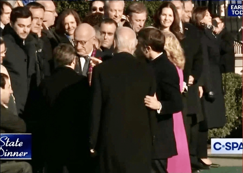 Eh bien, à part la plus longue poignée de main que Macron a eue… l’honneur de toucher constamment le maître du monde : toucher son épaule