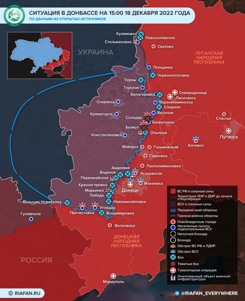Des combats actifs se poursuivent dans les régions de Marinka, Pervomayske, Novomikhailovka et Pobeda. Les unités russes avancent près d’Andreevka et sur Bakhmut depuis le sud et l’est.