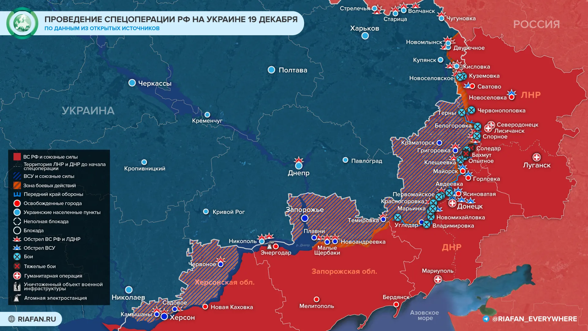 Dans la nuit et la matinée du 19 décembre, ils ont également bombardé le village de Novoselovka avec des HIMARS. Cinq roquettes ont été tirées, et les informations sur les victimes et les dégâts sont en cours d’établissement. Le village de Svatovo a également été touché, les forces armées ukrainiennes ayant utilisé une pièce d’artillerie de 155 mm.