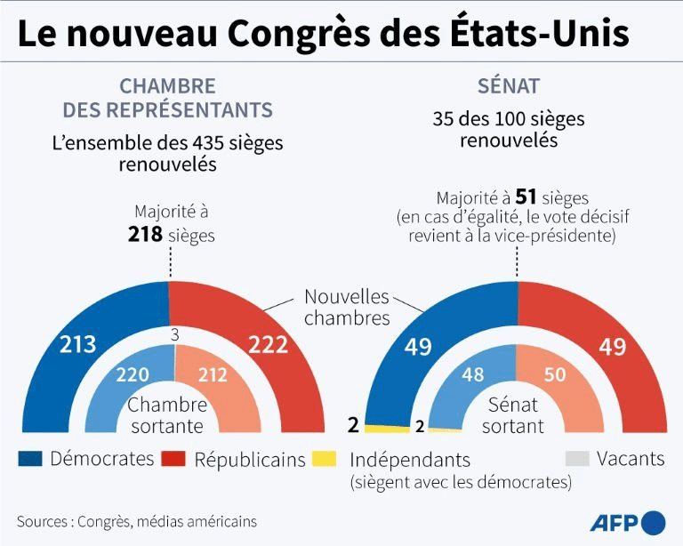 Ce mardi, les républicains prennent le contrôle de la Chambre américaine des représentants, prêts à en découdre avec le président Joe Biden, mais doivent d’abord surmonter des dissensions dans leurs rangs autour de l’élection de leur chef.
