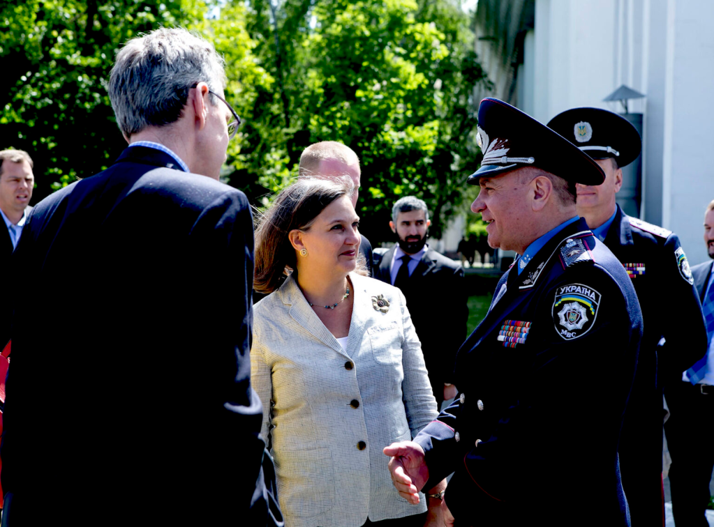 Dans un appel téléphonique intercepté entre la secrétaire d’État adjointe Victoria Nuland et l’ambassadeur américain en Ukraine, Geoffrey Pyatt, qui a eu lieu dans les jours précédant l’éviction de Ianoukovitch en février 2014, Nuland a positionné Iatseniouk comme le futur dirigeant de l’Ukraine et, dans ce contexte, a activement encouragé Iatseniouk à se coordonner avec Oleh Tyahnybok, le chef de Svoboda, qui était ouvertement soutenu par des radicaux armés du Secteur droit.