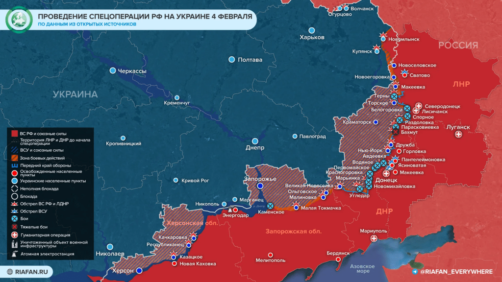Au sud-ouest de Bakhmut, les volontaires russes ont poursuivi leurs attaques près d’Ivanivske, à environ deux kilomètres. Des actions d’assaut sont également menées dans la périphérie orientale de Bakhmut même. L’offensive sur Krasnyaya Gora continue. Malgré la situation difficile, l’AFU ne bat pas en retraite.