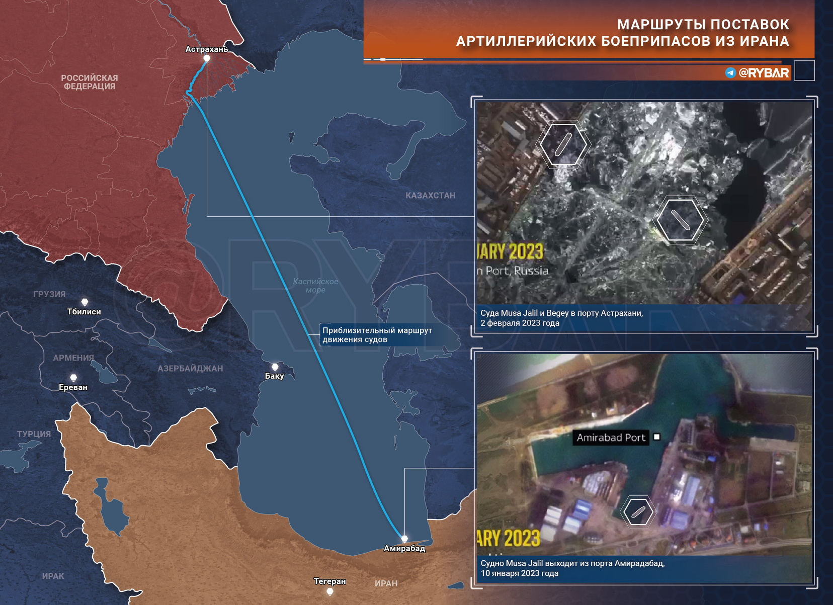 La chaîne de télévision britannique Sky News a publié aujourd’hui une information selon laquelle, fin janvier, 100 millions de cartouches et 300 000 obus d’artillerie, de chars, de roquettes, de grenades et de mortiers ont été expédiés du port iranien d’Amirabad vers Astrakhan. La cargaison comprenait également 10 000 casques et gilets pare-balles.