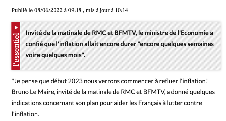 Pour certains, le ministre de l’économie dégagerait une forme de compétence naturelle, avec son expression policée et sage. Mais en réalité, celui qui est à Bercy depuis près de 6 ans est en échec sur la plupart des sujets. Il ne cesse de se tromper, sur l’impact des sanctions sur la Russie ou l’inflation, et se contente de chercher à rattraper son manque de prise sur le réel par des déclarations creuses ou irresponsables, comme l’a bien montré cette dernière semaine.