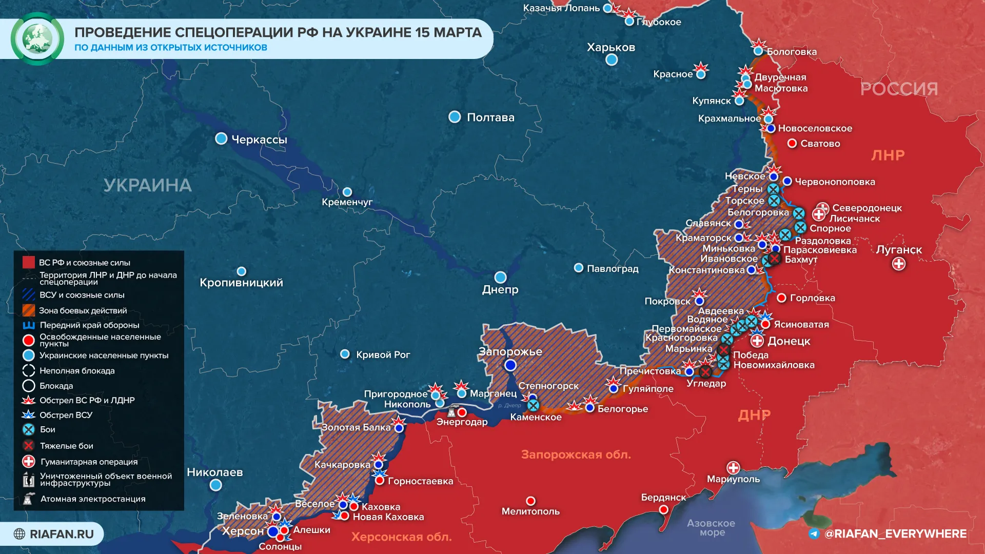 Pendant ce temps, dans la direction de Luhansk, les forces armées russes ont avancé de Zolotarevka et Novodruzhesk vers Bilohorivka. Au nord, elles ont réussi à avancer vers Yampolovka. Elles ont également attaqué dans les régions de Nevskoye et Makiivka.