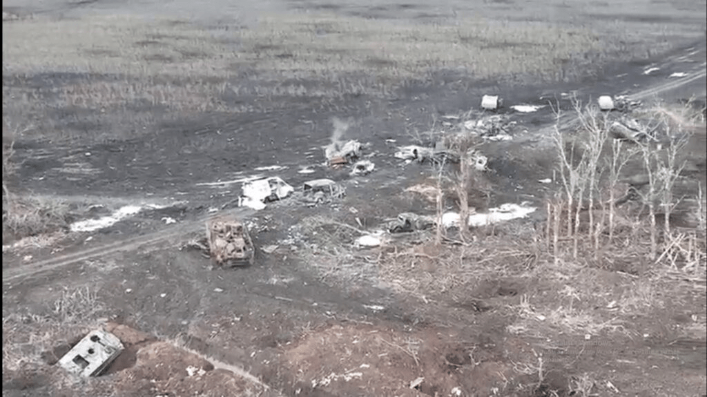 Ces images donnent un aperçu de l’équipement militaire détruit des forces de Kiev sur la route Bakhmut-Khromovo. C’est la seule route que les forces de Kiev peuvent encore plus ou moins utiliser pour fuir Bakhmut. Elle est également utilisée pour tenter d’approvisionner en munitions et en renforts la garnison pro-Kiev de la ville.