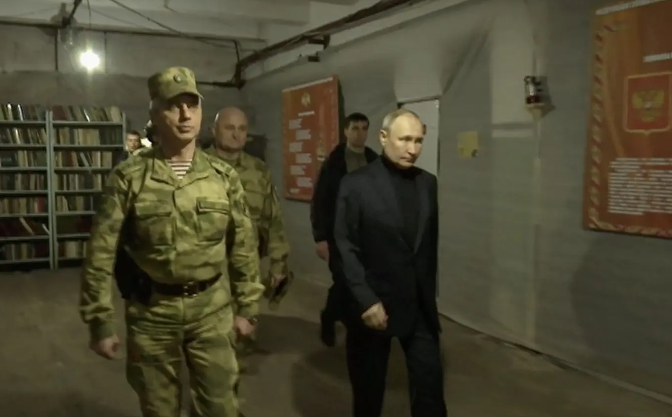 Ce fut encore le cas ce mardi, lorsque le Kremlin a surpris tout le monde en annonçant un voyage de Poutine dans la zone de guerre et en l’illustrant par une vidéo montée de manière manipulatrice. Ce n’est pas tant le voyage en lui-même qui était remarquable – le président s’était déjà rendu une première fois dans les territoires occupés en mars – que le groupe d’officiers qui l’accompagnait.