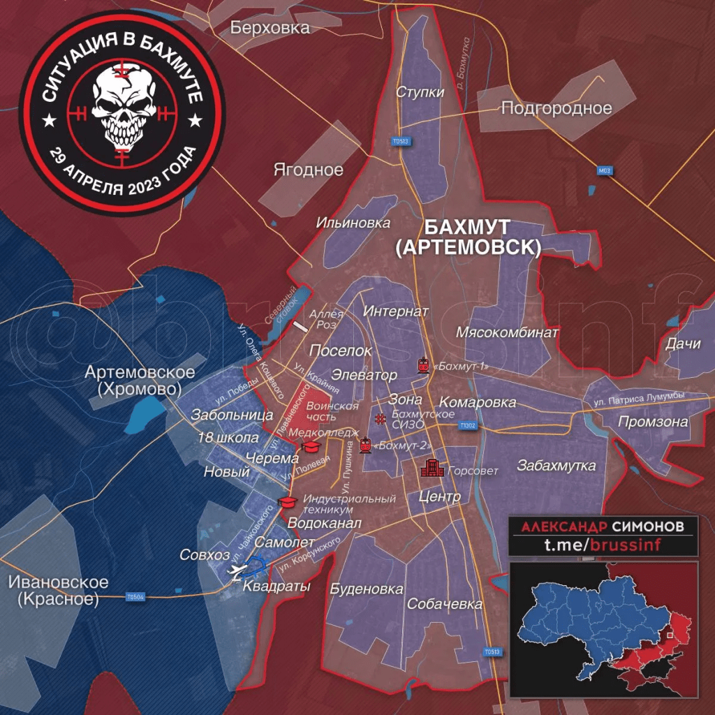 La veille, le correspondant militaire a rendu compte des combats sur le territoire de l’école de médecine, où plusieurs bâtiments ont été pris par le PMC Wagner, ainsi que du repoussement des unités ukrainiennes de la rue Oleh Koshevoy et du territoire de l’école industrielle Bakhmut.