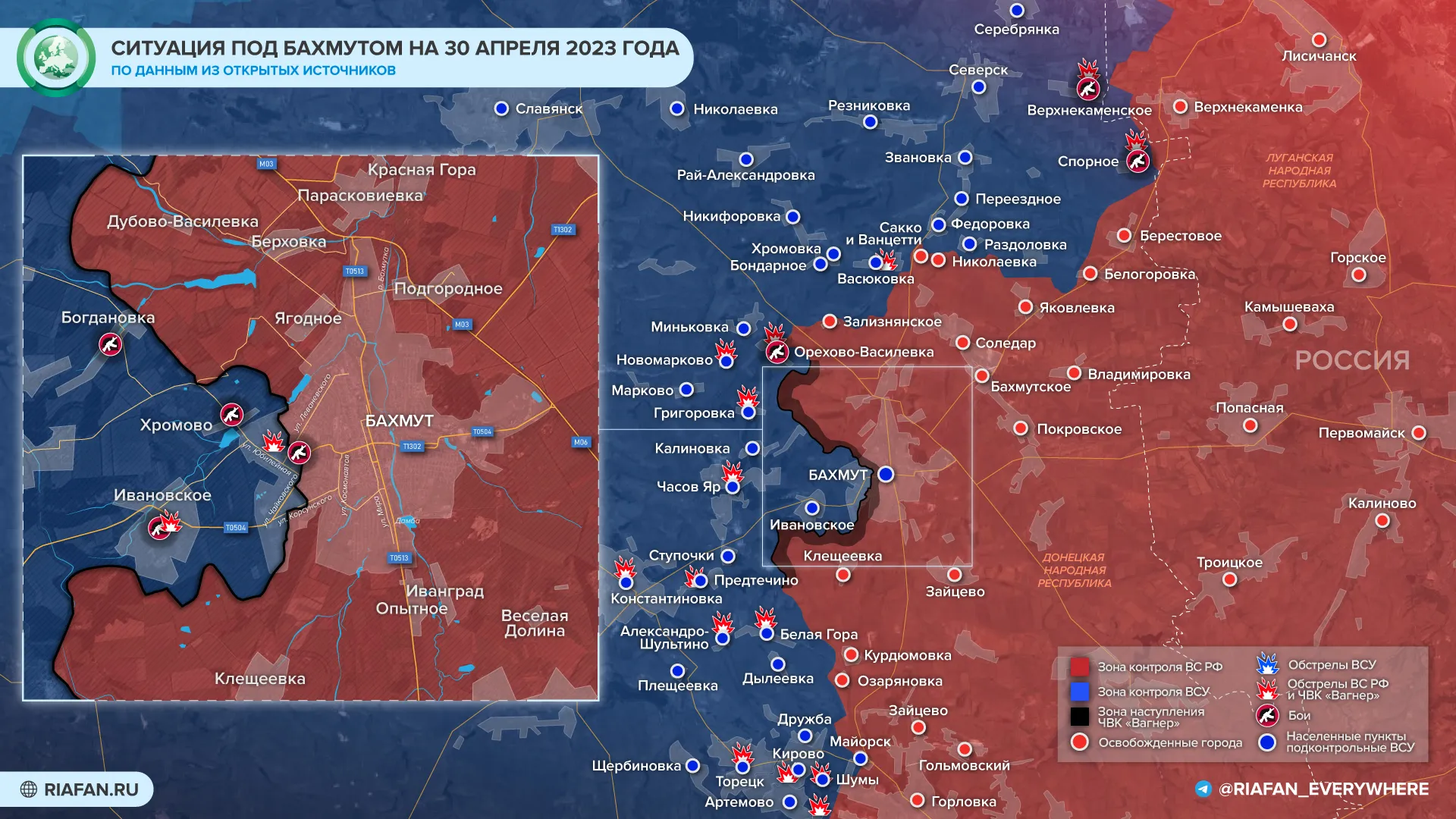 Les unités du PMC Wagner écrasent l’armée ukrainienne au sud, à l’ouest et au nord de Bakhmut, et des progrès sont signalés dans ces deux dernières zones. D’intenses contre-attaques ont lieu près de Khromovo, et le groupe progresse également dans la région de Bohdanivka.