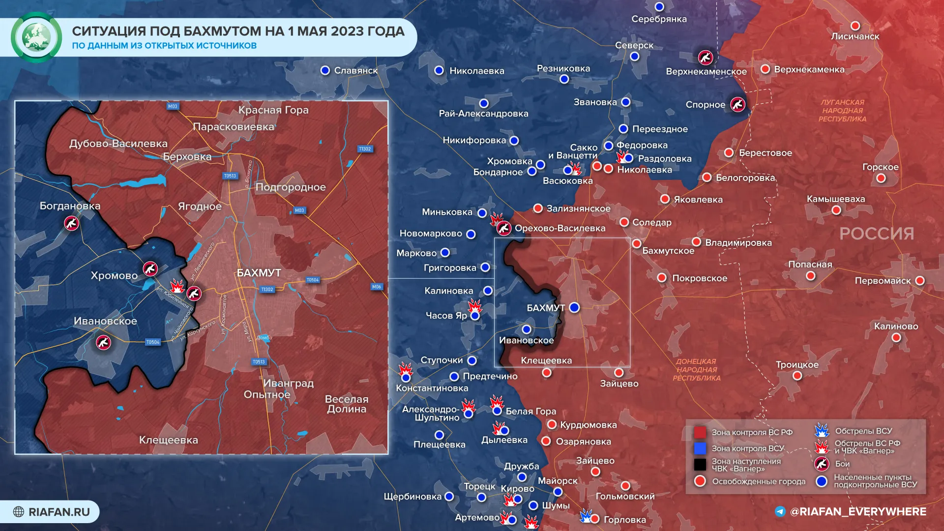 Des unités de la Tcheka Wagner avancent sur les positions des forces armées ukrainiennes dans les parties sud, ouest et nord de Bakhmut. Les contre-attaques se poursuivent près de Khromovo.