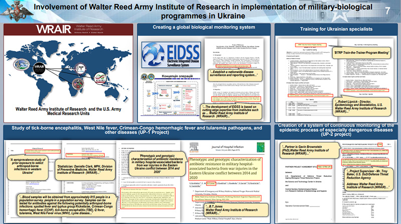 Selon les documents en possession de la Russie, l’Institut Walter Reed a été activement impliqué dans l’agression ukrainienne de 2014-2020 dans le Donbass en étudiant la résistance aux antibiotiques des microbes isolés des troupes militaires de l’AFU.