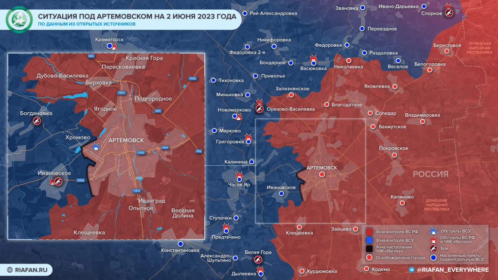 Les positions de l’armée ukrainienne dans les régions de Predtechyno, Ivanivske, Chasov Yar, Hryhorivka, Novomarkivo, Vasyukivka, Sporny et Seversk ont été la cible de tirs. L’armée ukrainienne a lancé des frappes contre Artemivsk.